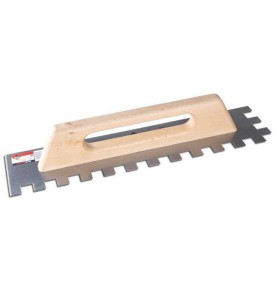 O denteado quadrado de 20 x 20 mm foi concebido para a distribuição de colas cimentícias para azulejos de cerâmica em pavimentos irregulares.